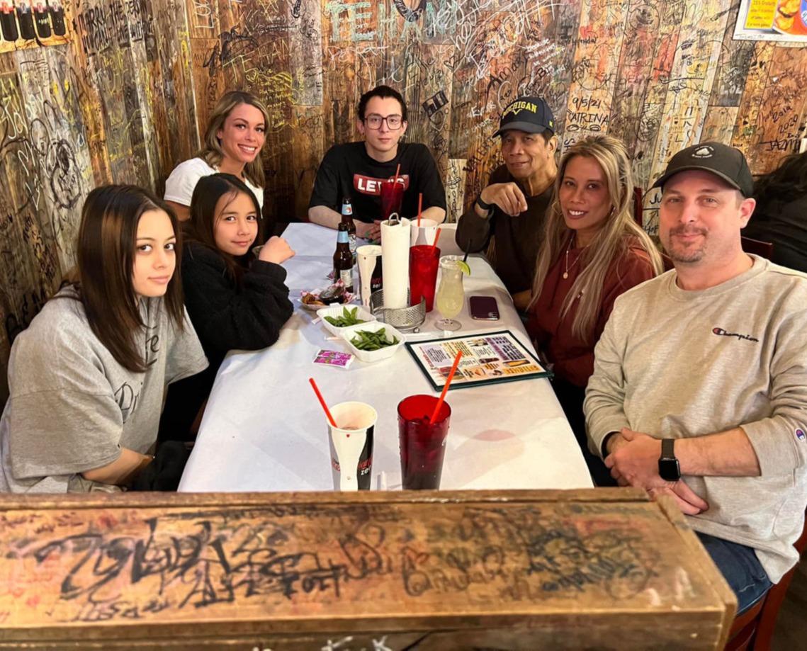 Alex, Ava, Camille (stray we picked up), Joshua, Neil (Father-in-Law), Jen (my smoking-hot wife) and me, The Jim McFadden.